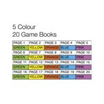 20 game bingo books typically used for Free or Prize bingo operated in clubs. 5 colour ticket rotation. Books supplied in a perforated strip of 6 books with 20 pages per book. Each box contains 2,400 individual books (equivalent to 400 x 6 strip books).