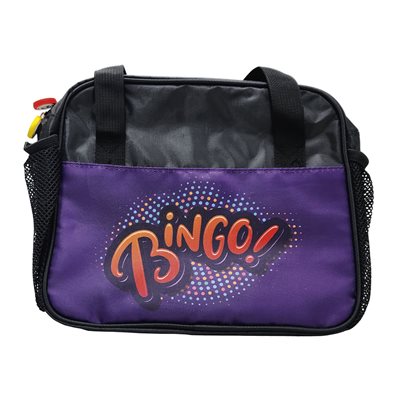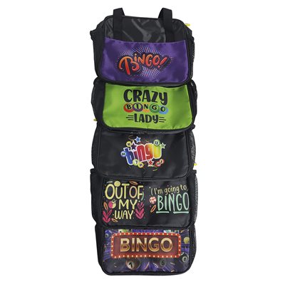 The bag that has been designed specifically for Bingo! Bag features include a large compartment with zipper and convenient carry handles. Inside there are 3 pockets – 1 large and 2 small plus a transparent removable card holder. Outside there are 2 x mesh pockets and miniature bingo ball zippers. Bag dimensions are 23cm W x 22cm H x 10cm D. Made from easy clean nylon fabric.